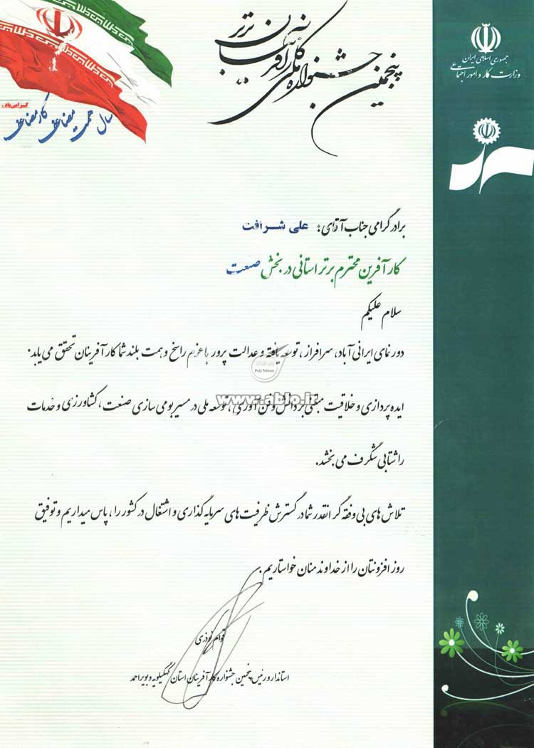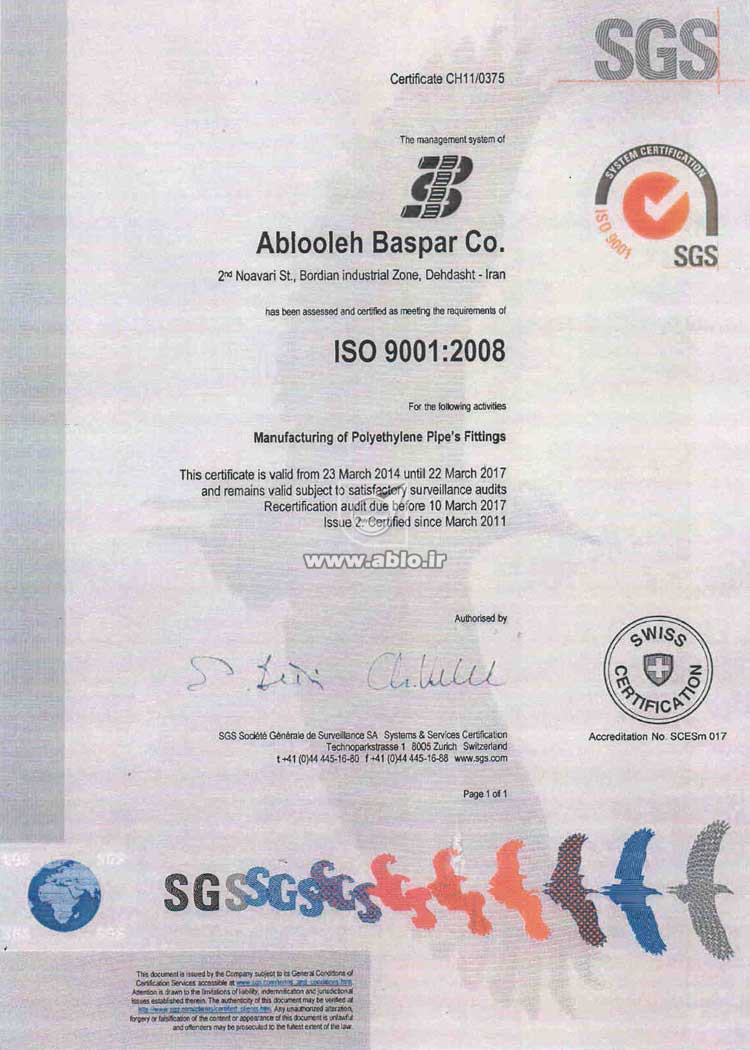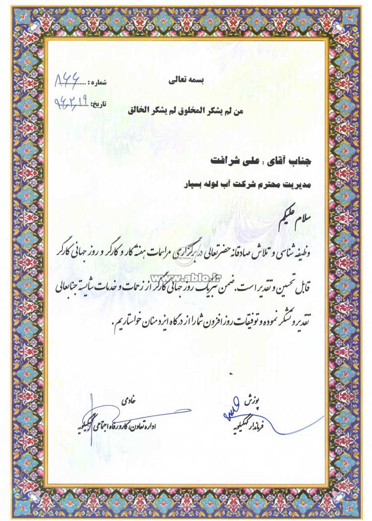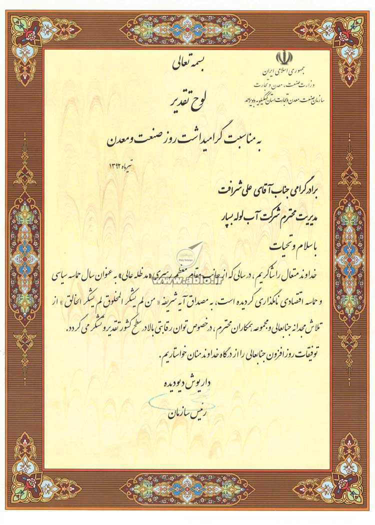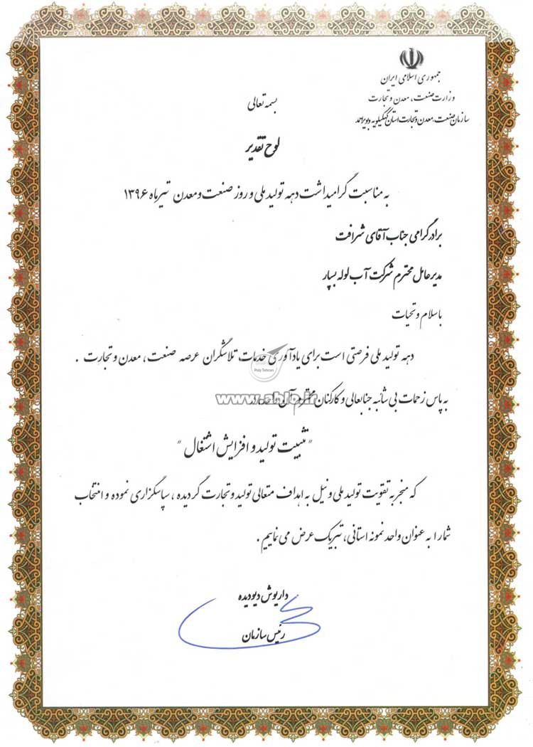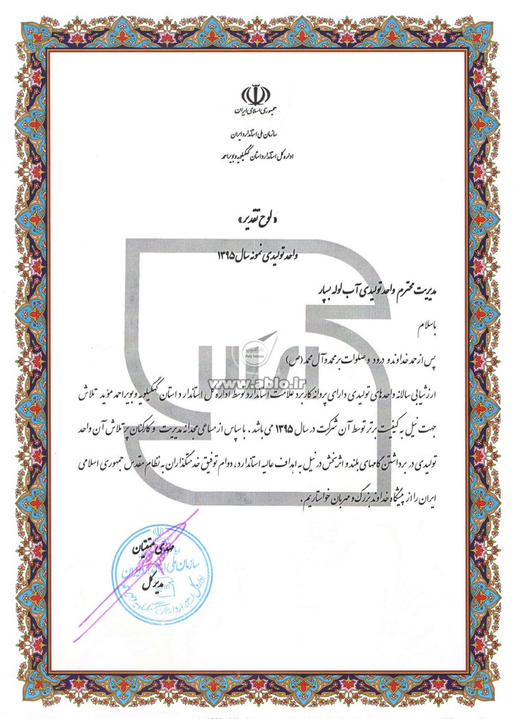 تاییدیه ها، مجوزها و تقدیر نامه های آب لوله بسپار